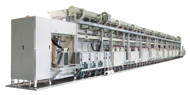 柔性板卷对卷垂直连续电镀设备主要用于柔性板PCB电镀领域,实现卷式柔性板整卷连续电镀生产,穿戴设备、智能家电、通讯设备等。